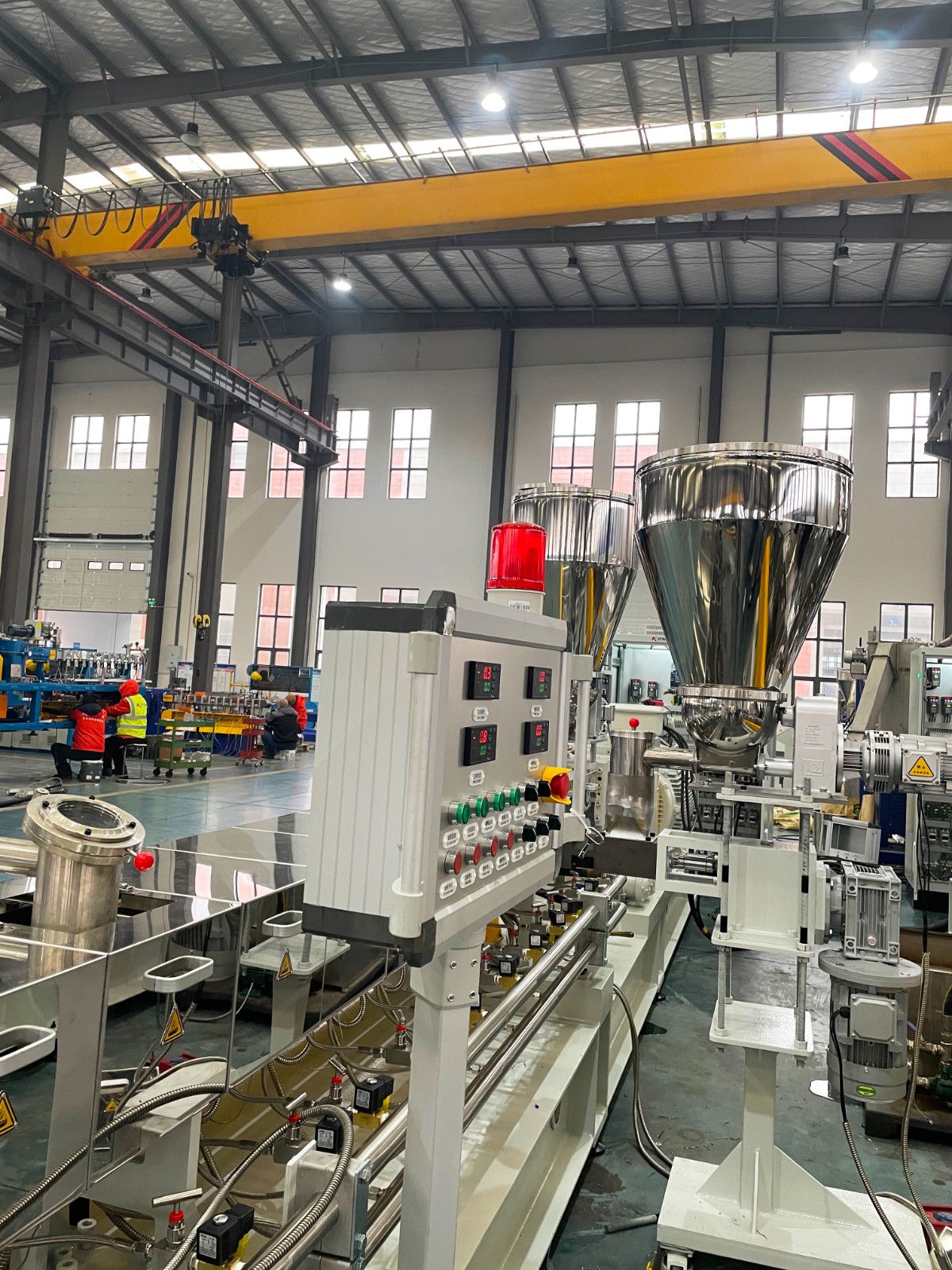 我們根據(jù)客戶的一些特殊需求和使用習(xí)慣以及科爾克豐富的現(xiàn)場經(jīng)驗對整個雙螺桿配混改性生產(chǎn)線進(jìn)行優(yōu)化以及側(cè)邊增加錐雙喂料從而實現(xiàn)量身定制。目前交付的雙螺桿生產(chǎn)線在實現(xiàn)了高產(chǎn)量的前提下,并能可靠穩(wěn)定地運行生產(chǎn)。